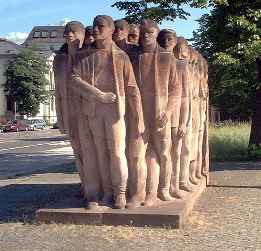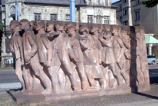 Das von Hans Dietrich geschaffene Mahnmal auf dem Vorplatz des Chemnitzer Hbf.